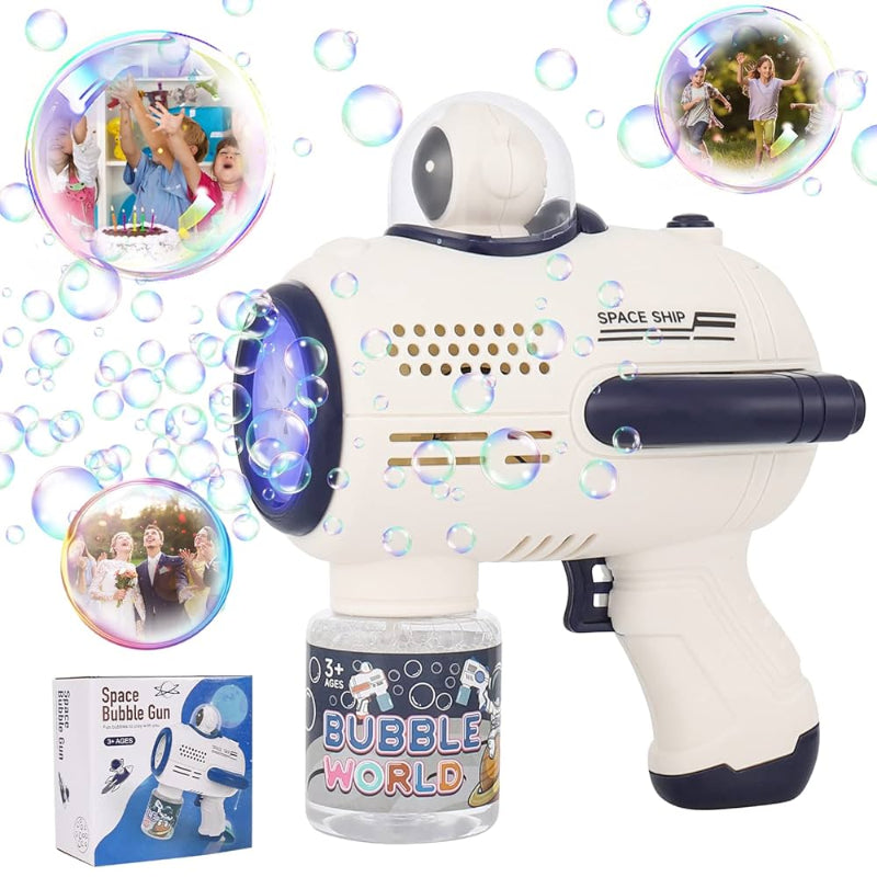 High-quality materials: The bubble guns are made of durable ABS material, which is safe for children. A new type of bubble machine in astronaut design with a cute round design, which is very popular with children. Simply connect 4 AA batteries (not included) and you will get a beautiful world of soap bubbles.